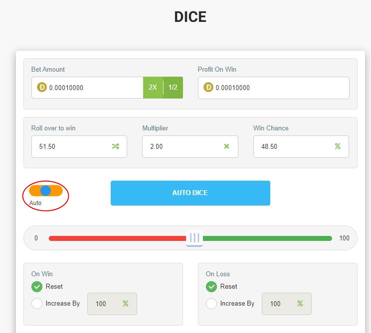 設定したら、青のAUTO DICEをクリックすればあとは放置でOKです。