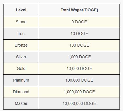 最上位のMasterは1000万DOGE(約2億6000万円)必要なのでとんでもないハイローラーでもない限り非現実的だと思いますが・・・