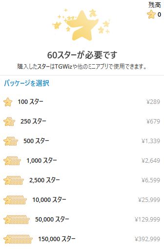 課金はゲーム内でスターを買う形(クレジットカード)が一番手軽ですが、実はゲーム内から直接スターを購入すると大損します